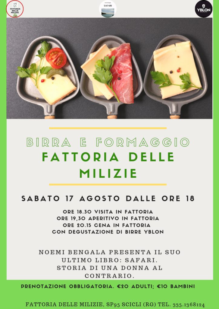 Una serata all’insegna di birra, formaggi e il tutto sarà allietato da una giovane scrittrice: Noemi Bengala, che presenterà il suo ultimo libro. SAFARI.