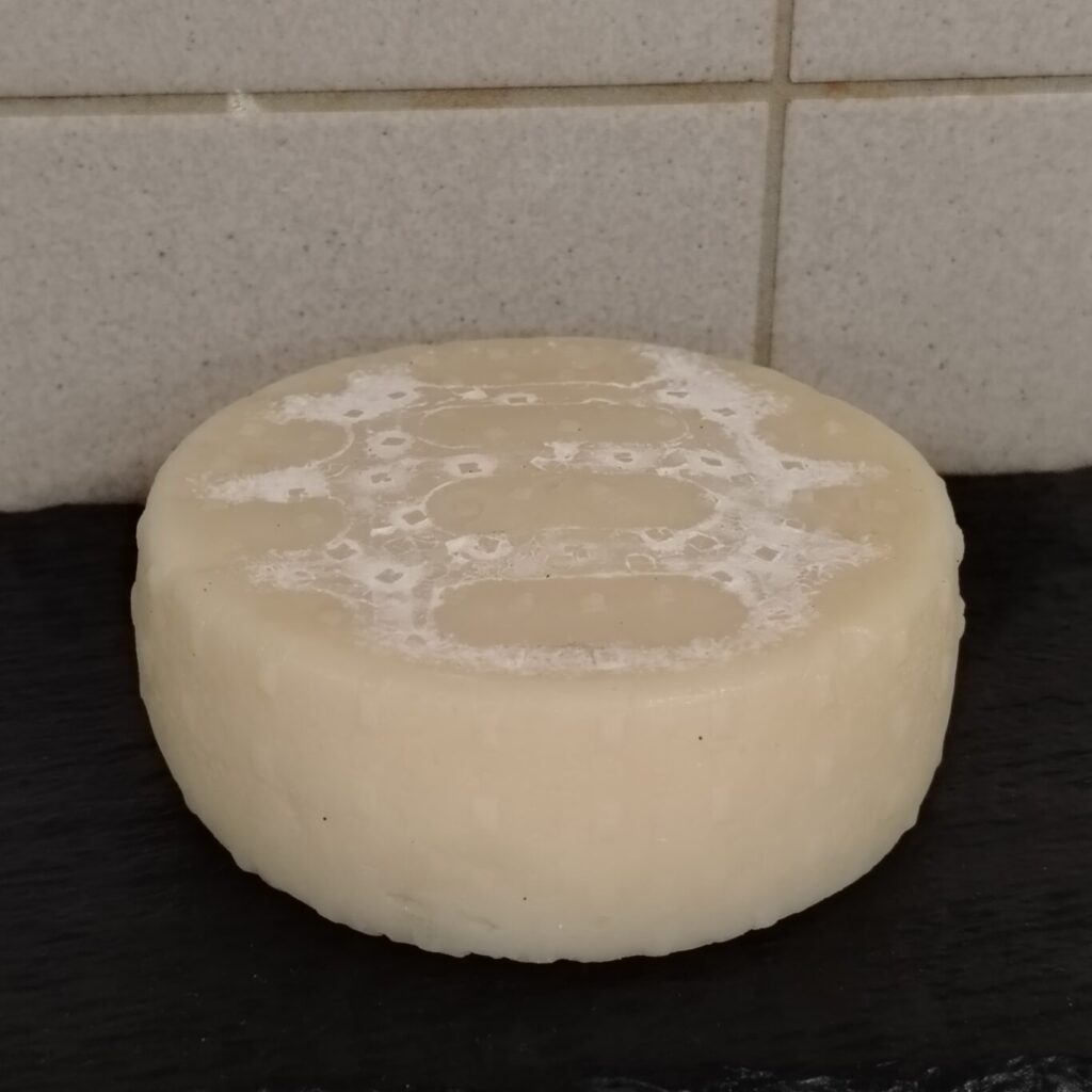 Caciottina intera di circa 400 grammi, sottovuoto.